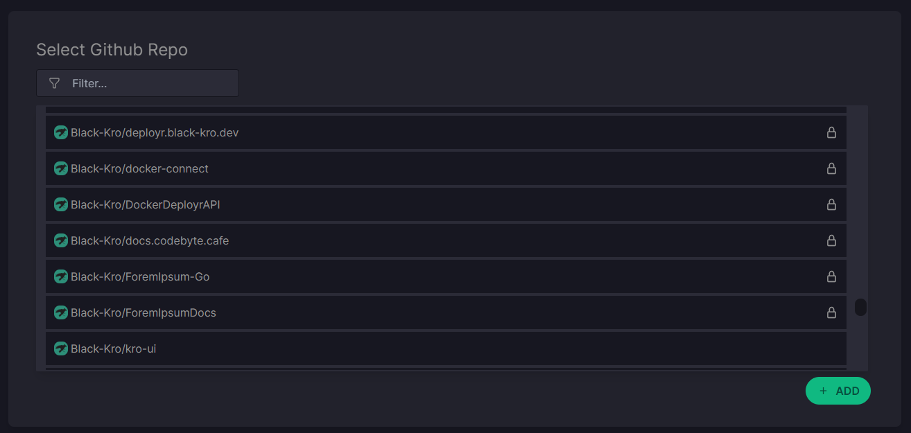 When setting up a new project in Deployr, the first step is to select a repository from your Github account. This will allow Deployr to read all available projects from your config and allow you to setup and add any deployable projects within!