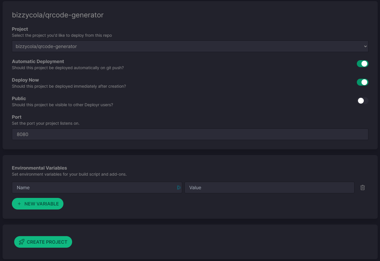 Deployr is one of my biggest coding projects of the last few years. It's provided many challenges and learning curves to overcome. It started out with a desire to build a project capable of deploying all my backend tools and apis from GitHub to a single server with docker containers, with a streamlined interface and easy settings for configuring the subdomains, project settings, docker container networks and volumes and the capacity to deploy multiple projects from within a single git repository.