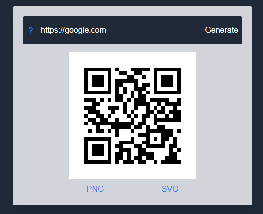 A very simple frontend developed by request for generating a QR code from a URL(or any text) and saving as a PNG or SVG file.